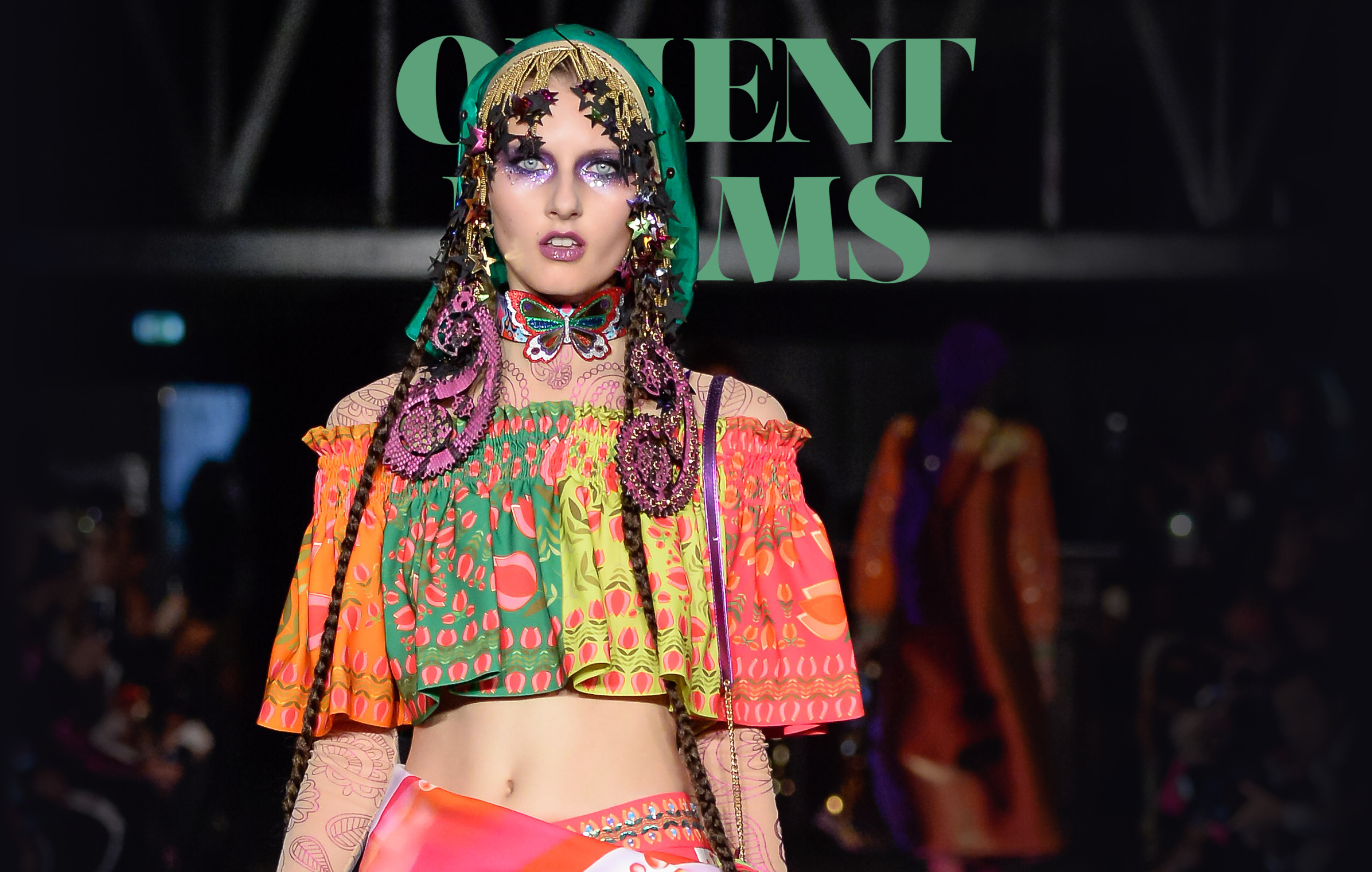 Manish Arora a présenté une tsigane excentrique et psychédélique, dans un style d’Europe orientale, une sorte de version fantaisie de l’Esmeralda de Gina Lollobrigida. Le créateur a utilisé des couleurs vives, une multitude de motifs attrayants et de couches superposées, des franges et des boucles d’oreilles surdimensionnées.